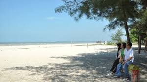 pantai yang lebar dan panjang, berhias pasir putih yang bersih dan